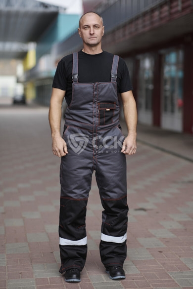Полукомбинезон: утепленный с регулируемой шириной по низу, застежка центральная на молнии, регулируемые бретели с застежками-карабинами. На спинке эластичная лента, регулировка ширины с помощью пат и кнопок. СОП шириной 5 см внизу брюк.